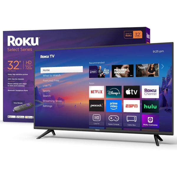 2025 - 32인치 셀렉트 시리즈, 720p HD 음성 리모컨 포함 RokuTV Wi-Fi가 제공되는 평면 LED