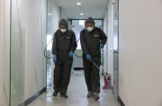 콜센터 안전조치 현장점검 소독... 7~9층 필수인력만 출근, 재택근무11층은 휴업 무기한 연장 구로구가 코리아빌딩(구로구 경인로 610) 전면 개방 하루 전날인 22일 오후 폐쇄가 유지됐던 건물 7~12층에 대한 안전조치 현장점검과 방역 소독을 실시했다. 구로구는 먼저 콜센터를 대상으로 요구했던 안전조치 이행 여부를 살폈다. 점검 내용은 ▲높이 90cm 이상 칸막이 설치 ▲직원 간 1.5m 이상 거리 두기 ▲휴게실 칸막이 설치 ▲사무실 내 손소독제·체온계·마스크 등 위생용품 비치 등이다. 점검결과 구청이 요구한 조치사항들은 이행...