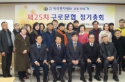 한국문인협회 구로지부(회장 장동석) 제25차 정기총회 및 신년하례회가 지난 10일 오후 5시30분 구로구청 신관2층 평생학습관에서 이성 구청장을 비롯 최문식 구로문화원장, 정유준 김익하 고문, 홍춘표 명예회장 등 회원 60여명이 참석한 가운데 열렸다. 이날 총회에 앞서 구로문학상 제7,8회 후원회장인 최문식 구로문화원장에게 회원들의 뜻을 모아 감사패 수여식과 지난 10월에 시문학상을 수상한 정유준 고문에게 축하기념패 전달식도 함께 열렸다. 이어 최대승 사무국장 사회로 개회선언과 국민의례, 개회사 등 순서로 진행됐다.김...