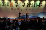 | 2020년 구로구 신년인사회가 지난 10일 오후 2시 신도림테크노마트 11층 그랜드볼룸에서 성황리에 열렸다.이번 신년인사회는 이성 구청장, 더불어민주당 원내대표인 이인영의원, 박칠성 구로구의회 의장을 비롯, 각 정당 지역위원장, 시의원, 구의원과 경제계, 사회계, 교육계, 문화체육계, 여성, 종교계, 보훈단체, 시민-직능단체와 구민 등 1천여명이 참석했다. 이날 행사는 GBS 김지혜 아나운서의 사회로 구로구립 청소년 오케스트라의 공연을 시작으로 국민의례, 구민들의 2020년 새해 소망을 담은 영상 상영, 이인영 의원 등 내빈 소... |