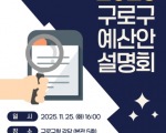 11월 25일 구로구청 강당서 예산안 주요 내용 공개·주민 의견 공유 구로구가 11월 25일 오후 4시 구로구청 5층 강당에서 ‘구민과 함께 여는 2026년 구로구 예산안 설명회’를 연다. 이번 설명회는 2026년도 예산안의 주요 내용을 주민에게 공개하고, 예산편성 과정에 대한 참여를 확대하기 위해 마련됐다. 구는 이를 통...